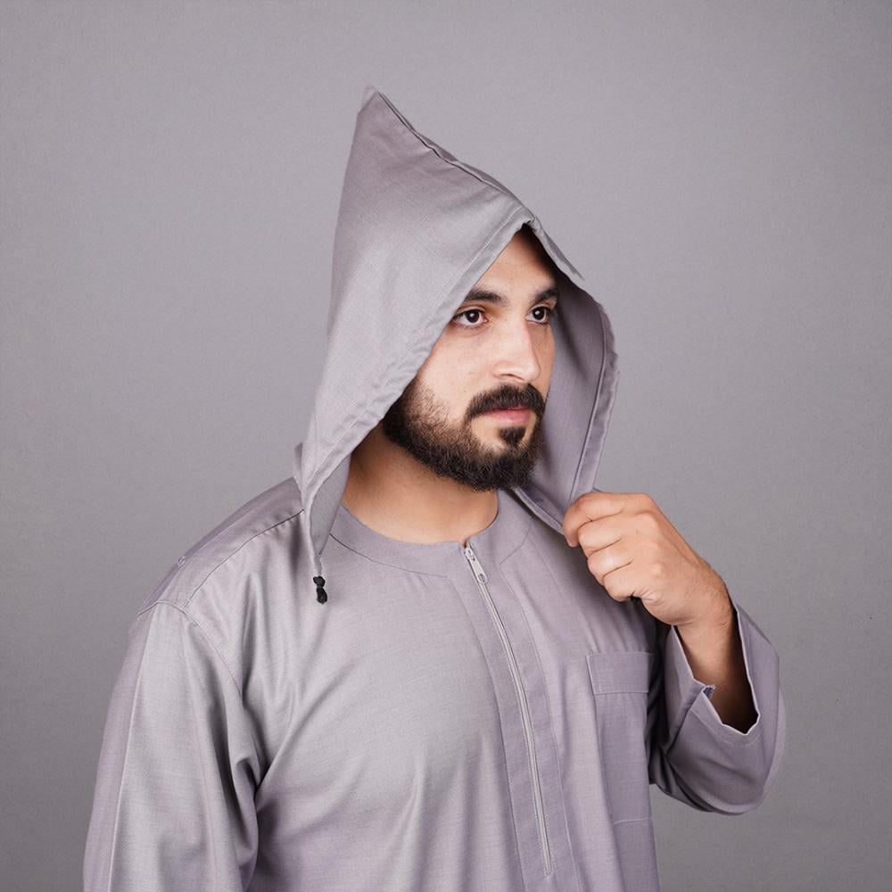 - ثوب مغربي بقبوع فاتح يمتاز بخامة شتوية مريحة توفر لك دفءً مثاليًا في الأجواء الباردة.
