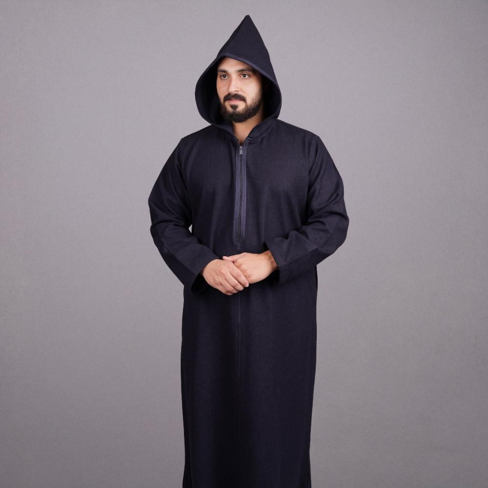 اختيارك لـ ثوب مغربي رجالي شتوي باللون الكحلي يضيف وقارًا وهيبة لإطلالتك، فهو لون يعكس الثقة والذوق الرفيع.