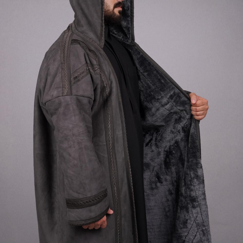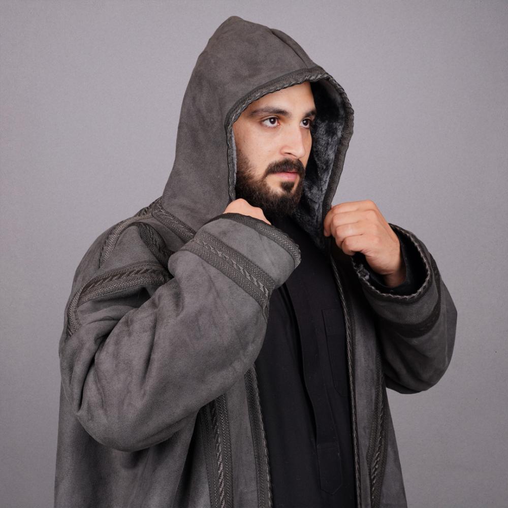 فروة رجالي شامواه بقبعة قابلة للازالة | لون رصاصي